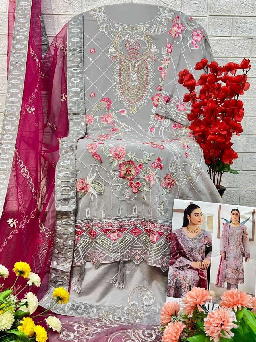| FABRIC DETAILS | TOP :- FOX GEORGETTE WITH EMBROIDERY BOTTOM, INNER :- DULL SANTOON DUPATTA :- BUTTERFLY NET |