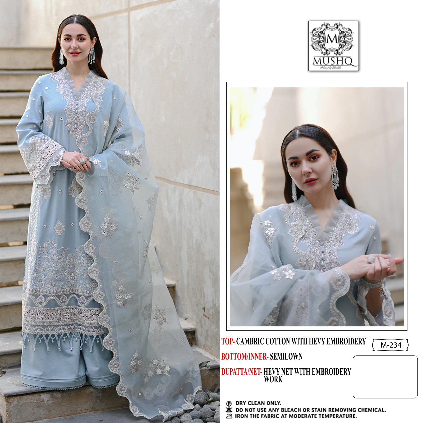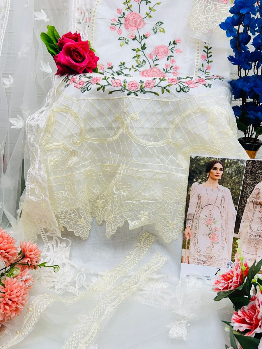| FABRIC DETAILS | Top : PURE CAMBRIC COTTON WITH HEAVY EMBROIDERY Bottom :PURE PC COTTON Dupatta : BUTTERFLY NET WITH HEVEY EMBROIDERY |