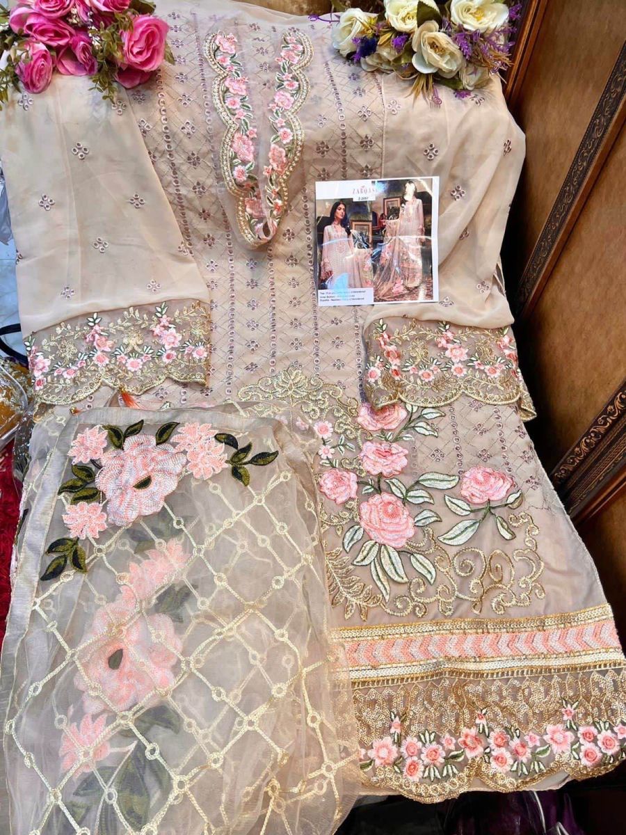 | DETAILS | ***Fabric Details:* **TOP -* FOX GEORGETTE HEAVY BORING EMBROIDERERY UNSTITCH*INNER BOTTOM -* HEAVY SANTOON*DUPATTA -* NAZNEEN/ BUTTER NET HEAVY EMBROIDERED WITH LACE*3 PCS IN SET* |