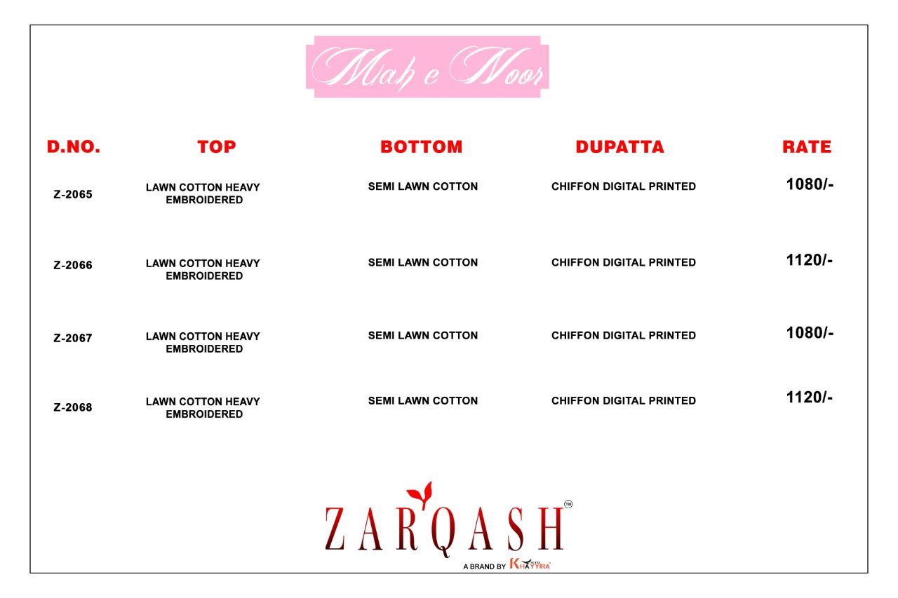 | DETAILS | TOP -* LAWN COTTON HEAVY EMBROIDERED UNSTITCH*BOTTOM -* SEMI LAWN COTTON*DUPATTA -* CHIFFON DIGITAL PRINTED*4 PCS IN SET* |