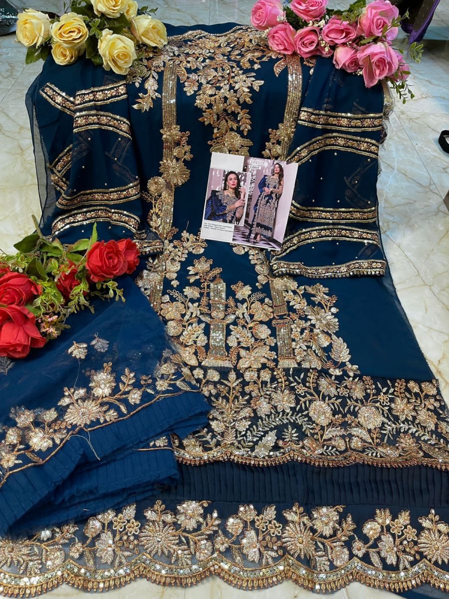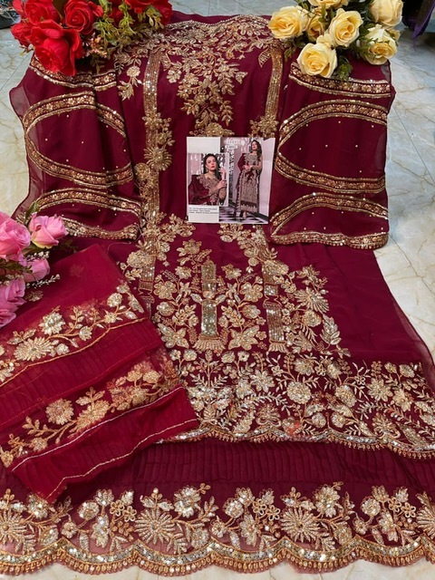 | DETAILS | *TOP -* FOX GEORGETTE HEAVY EMBROIDERED UNSTITCH *INNER BOTTOM -* HEAVY SANTOON *DUPATTA -* BUTTERFLY NET HEAVY EMBROIDERED WITH FRILL*5 PCS IN SET* |