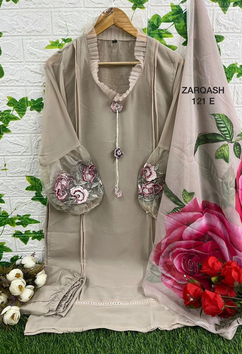 FABRIC DETAILS :- Top :- Fox Georgette WITH HANDWORK Pant :- HAVY LYCRA REYON Strachble Inner :- SNTOON INNER Duppta :- SILK DIGITAL PRINT2 COLOURS Size Chart Top size chest :- XL. (42) XXL. (44)Bottom SIZE :- XL. (38 - 42) XXL (38 - 44)VIEW PRODUCTS