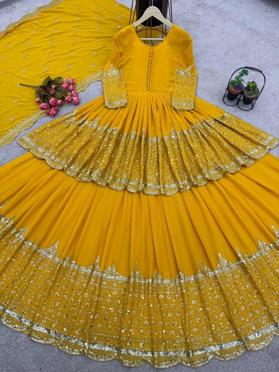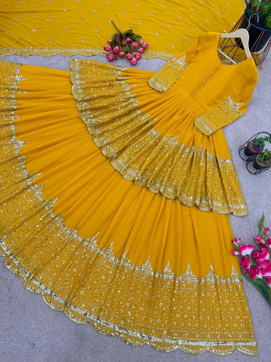 | FABRIC DETAILS | Top Top Fabrics : Faux Georgette With Heavy 5mm Embroidery Sequence Work With Sleeves Top Flair : 2.5 Meter Top Inner : Heavy Micro Cotton Top Lenght : 35 Inch Top Size. : 42 xl free size (fullstitched ) Lehenga Lehenga Fabric :Faux Georgette With Heavy 5mm Embroidey Sequence Work (semistitched) Lehenga Inner :Heavy Micro Cotton Lehenga Flair : 3 MeterDupatta Dupatta Fabrics : Faux Georgette With Embroidery Sequence Work and Embroidery Sequence lace Border Dupatta Length: 2.10 mtr |