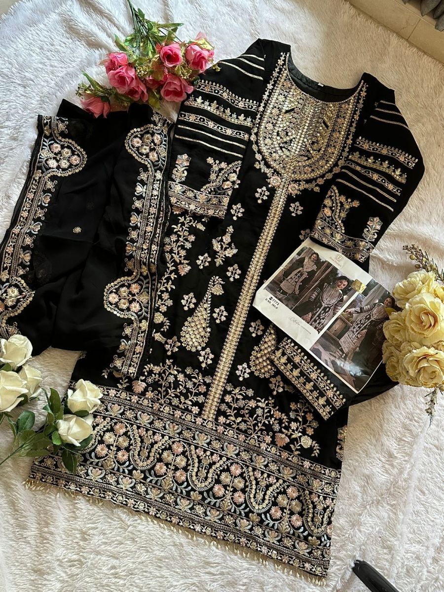 | FABRIC DETAILS | Georgette very heavy embroidered sequins work and panni work very beautiful shades semi stitched outfit with full work for sleeves unstitched santoon inner and bottoms with patch. Georgette embrdroidered heavy dupatta |