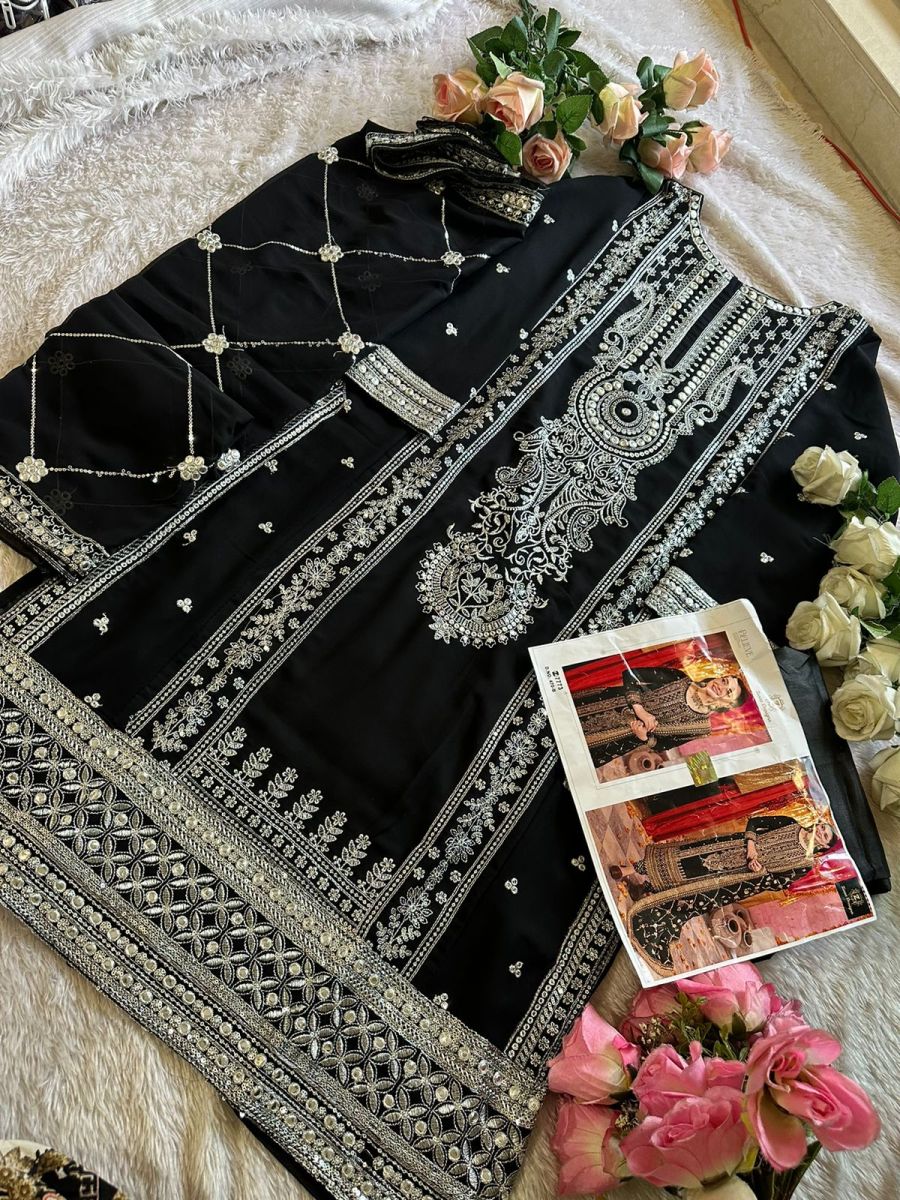 | FABRIC DETAILS | Georgett very heavy embroidered very beautiful shades semi stitched outfit unstitched santoon inner and bottoms. Embroidered full work georgette dupatta. |