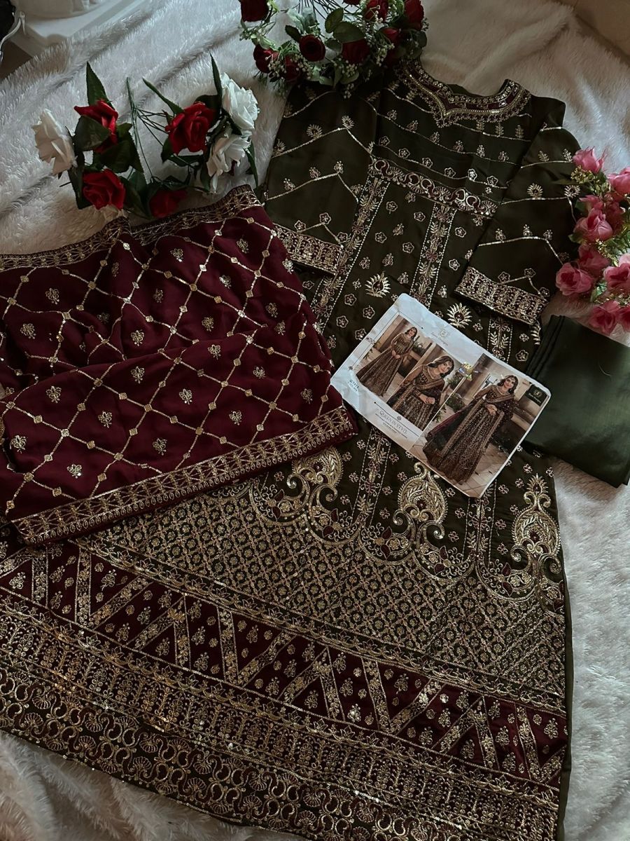 | FABRIC DETAILS | Georgette shaded very heavy embroidered very beautiful heavy embroidered semi stitched outfit semi flare long gown style kameez length 50+ unstitched santoon inner and bottoms. Embroidered full work georgette dupatta gorgeous dupatta matching embrdry work. |