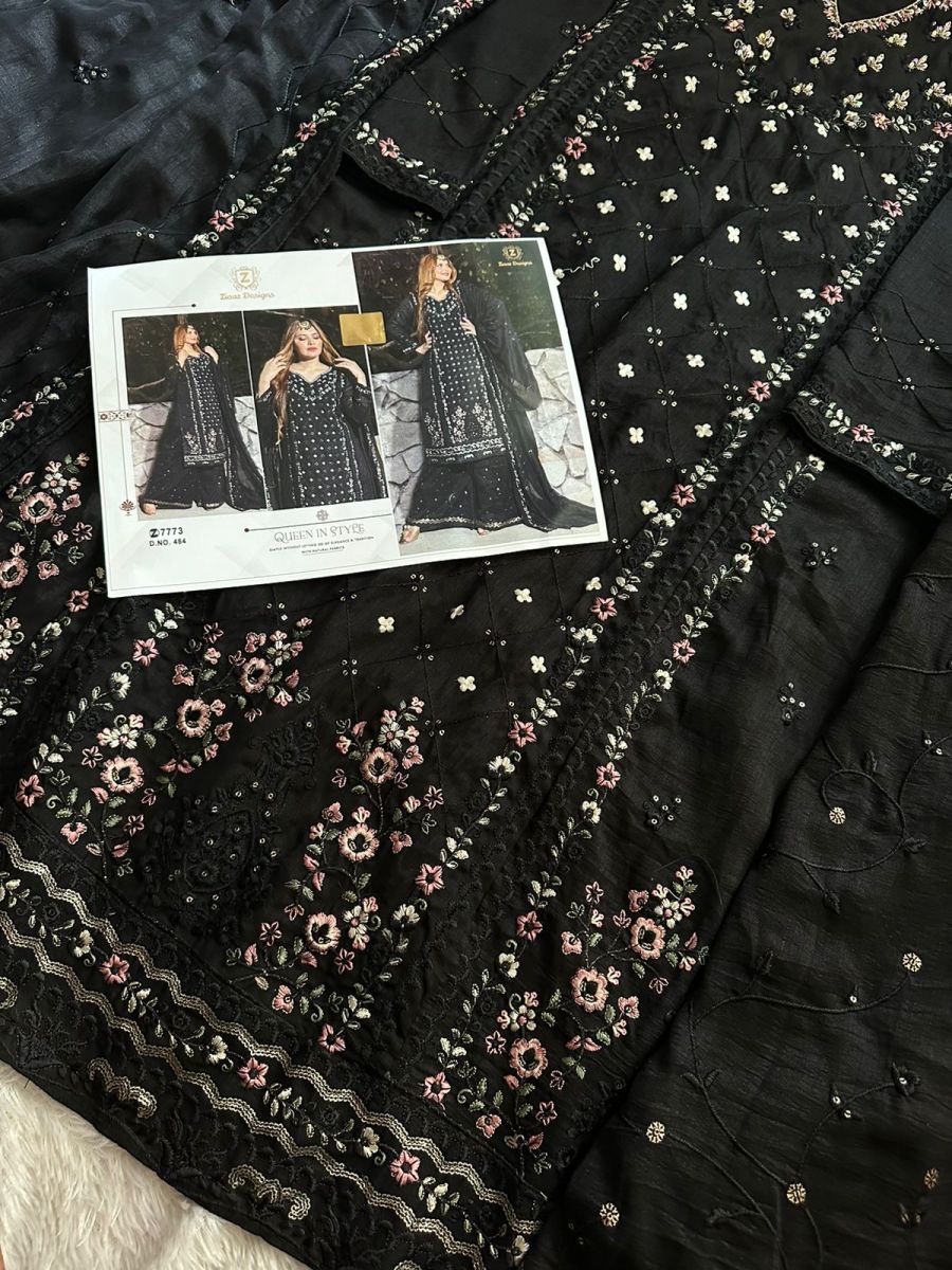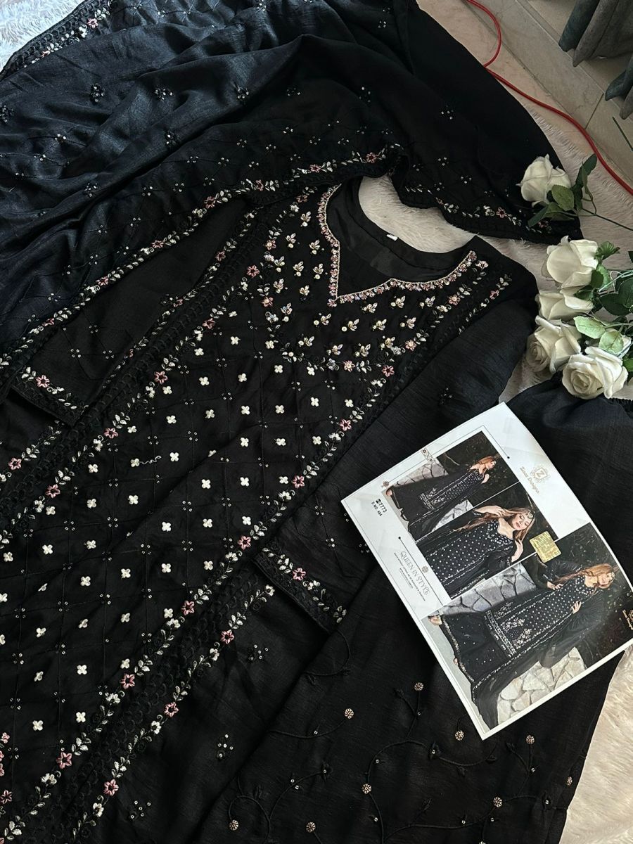 | FABRIC DETAILS | Chinon vichitra fabric embroidered heavy handwork semi stitched outfit unstitched santoon inner and bottoms embrdrd vichitra fabric full heavy work Embroidered full work vichitra chinon dupatta. |