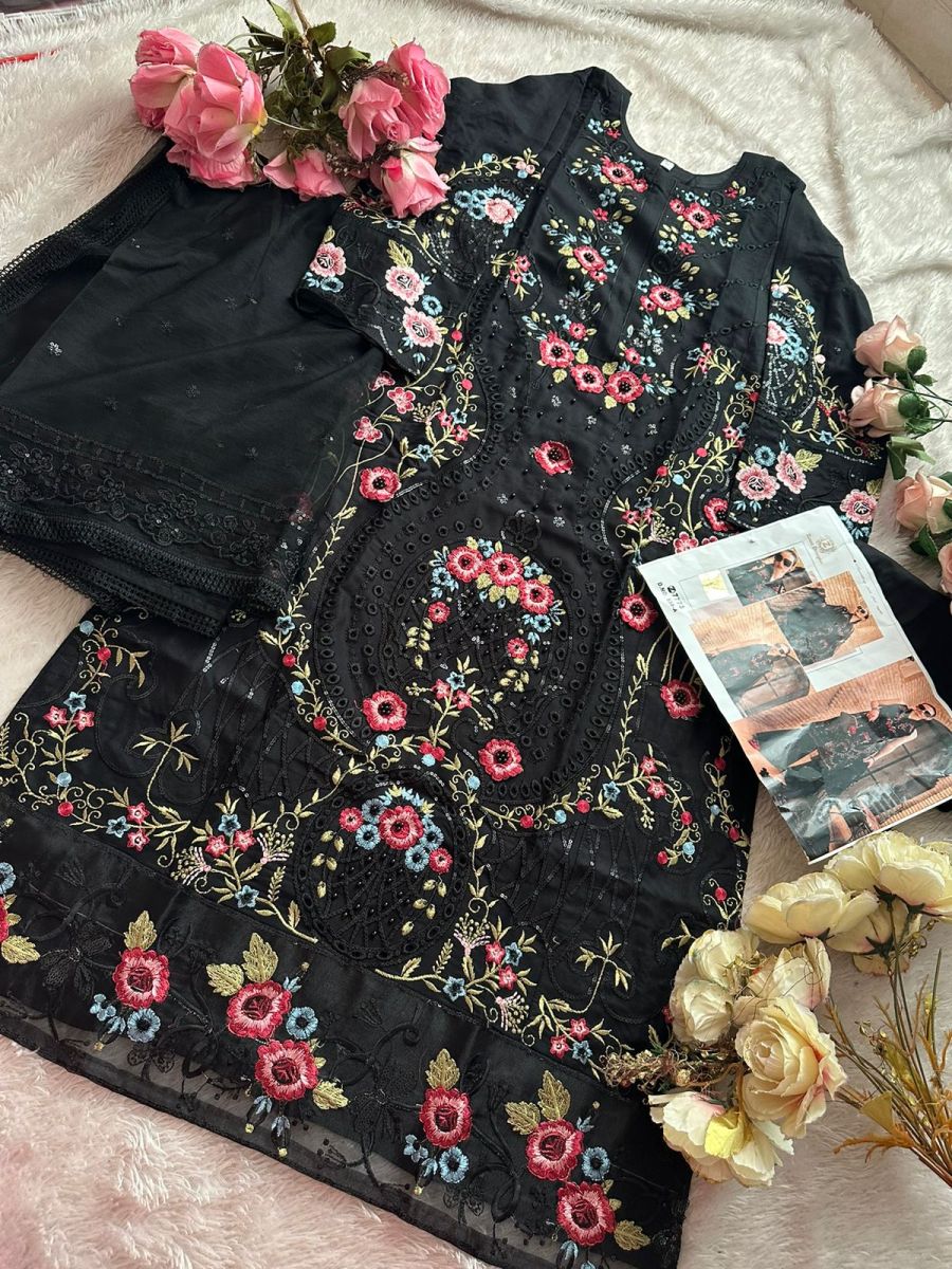 | FABRIC DETAILS | cotton very heavy embroidered moti work and 3d flowers semi stitched outfit unstitched bottoms cotton very beautiful Net Embrdroidered dupatta |