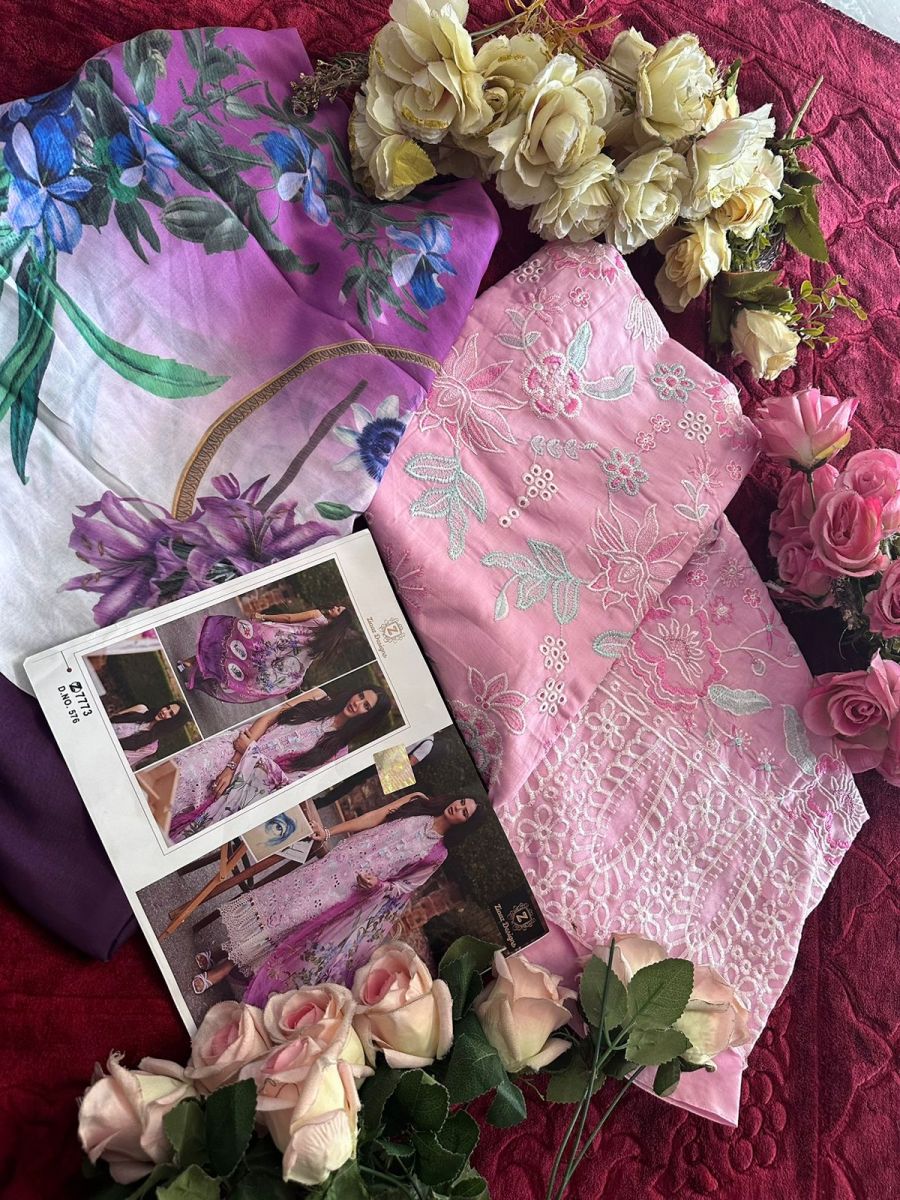 | FABRIC DETAILS | Cambric cotton very heavy embroidered all over semi stitched outfit unstitched cotton bottoms Very beautiful silk printed dupatta. |