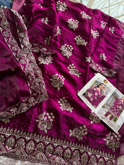 Jimmy choo Semi stitched outfit with beautiful embroidery and diamond work