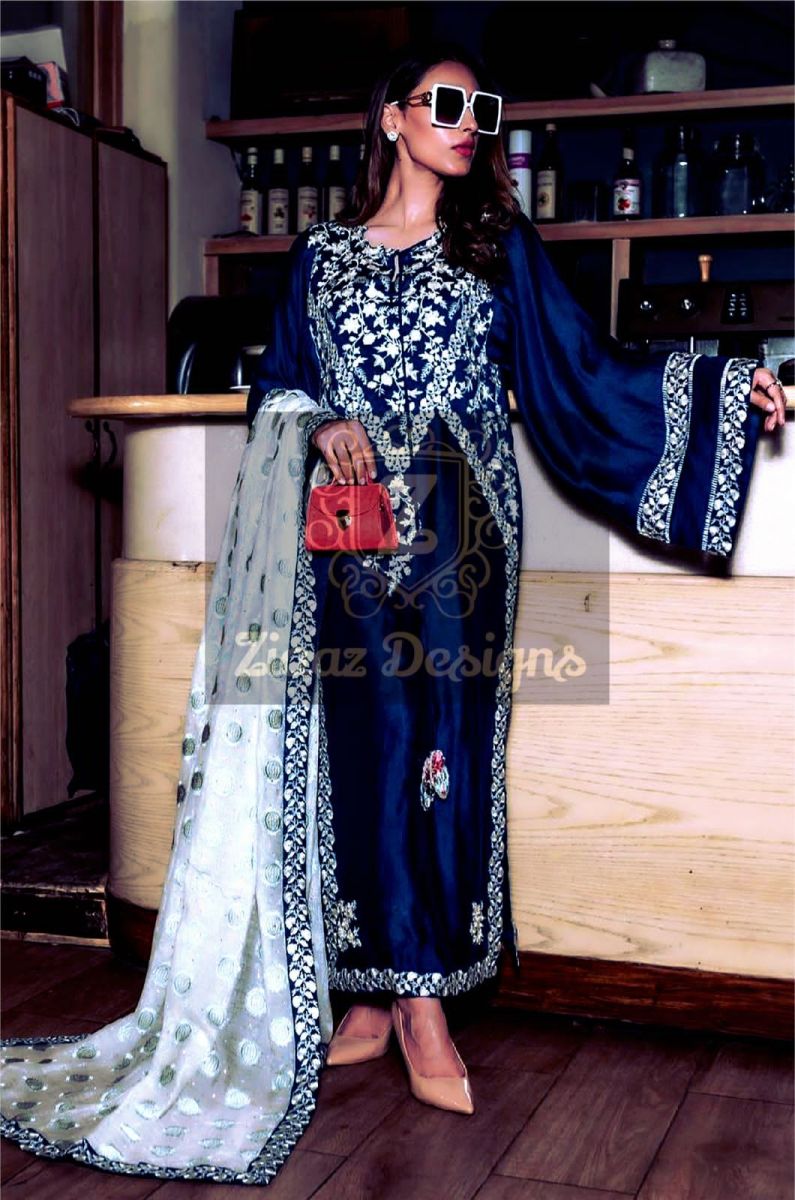 | DETAILS | Silk georgette fabric embroidered top and sleeves back also has work on the sides Santoon inner and bottoms Heavy Net embroidered Dupatta with embroidered borders. |