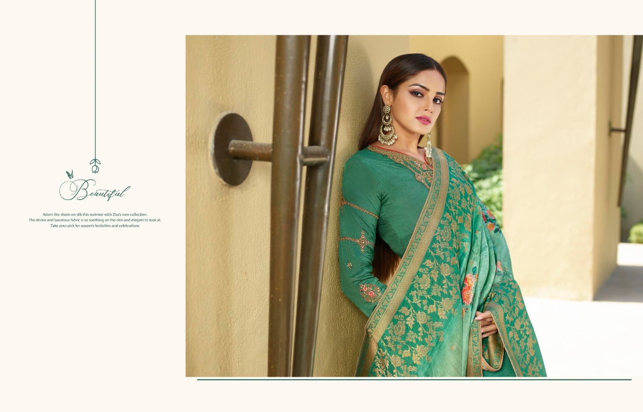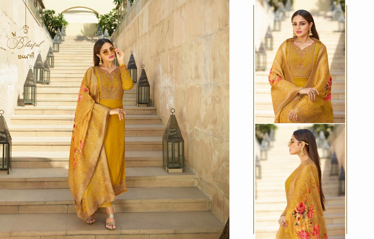 | DETAILS | Top -tusser satin with embroidery work Duptta-dola jequard digital print Bottom ineer-dull santoon |