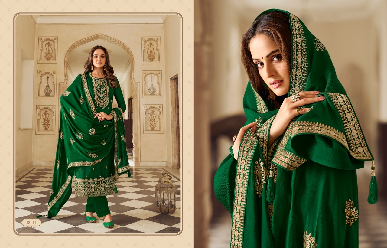 | DETAILS | ***Fabric Details:* * Top-Embroidered Dola with coding work Duptta- Chinon chiffon with coding border and sequence embroidery work Bottom and inner-Dull santoon |
