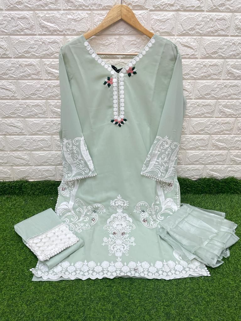 | DETAILS | ** *Details* *Top*:- Faux Georgette *Inner*:- Santoon *Dupatta*:- Organza Fancy *Pant* :- Cotton Strachble *Colour* :- 3 *Top xl size chest* (42) *Bottom xl size* (36-42) ** |