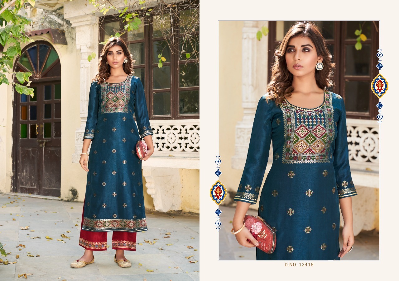 KALAROOP ARMANI D.NO 12416 TO 12420 READYMADE KURTIS MANUFACTURER SURAT