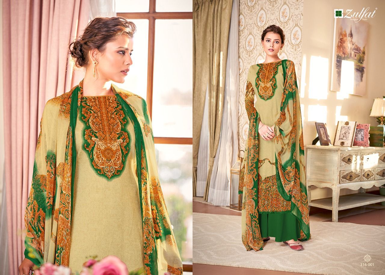 | DETAILS | Top: 100% Pure Original Heavy Jam Cotton Digital Print (2.50 mtrs)Dupatta: Exclusive Printed Nazneen chiffon dupatta with four side lace. (2.30 mtr)Bottom: pure cotton (3 mtrs) |