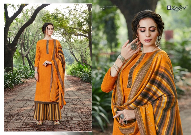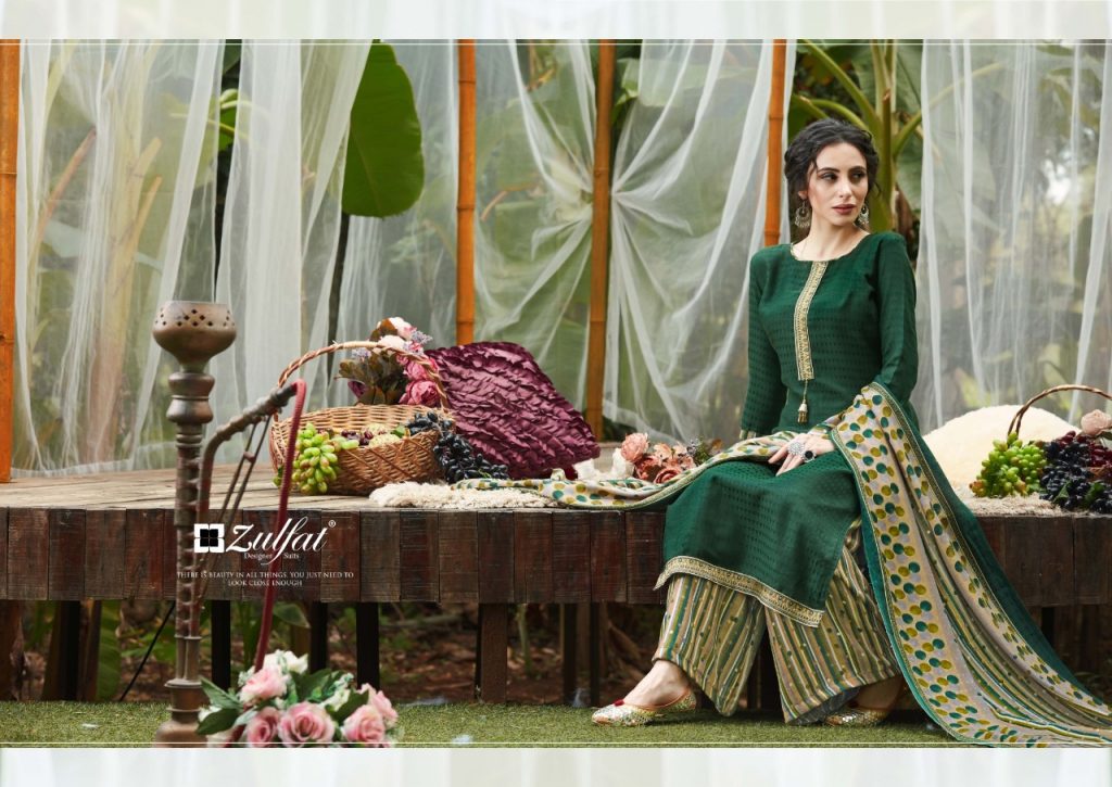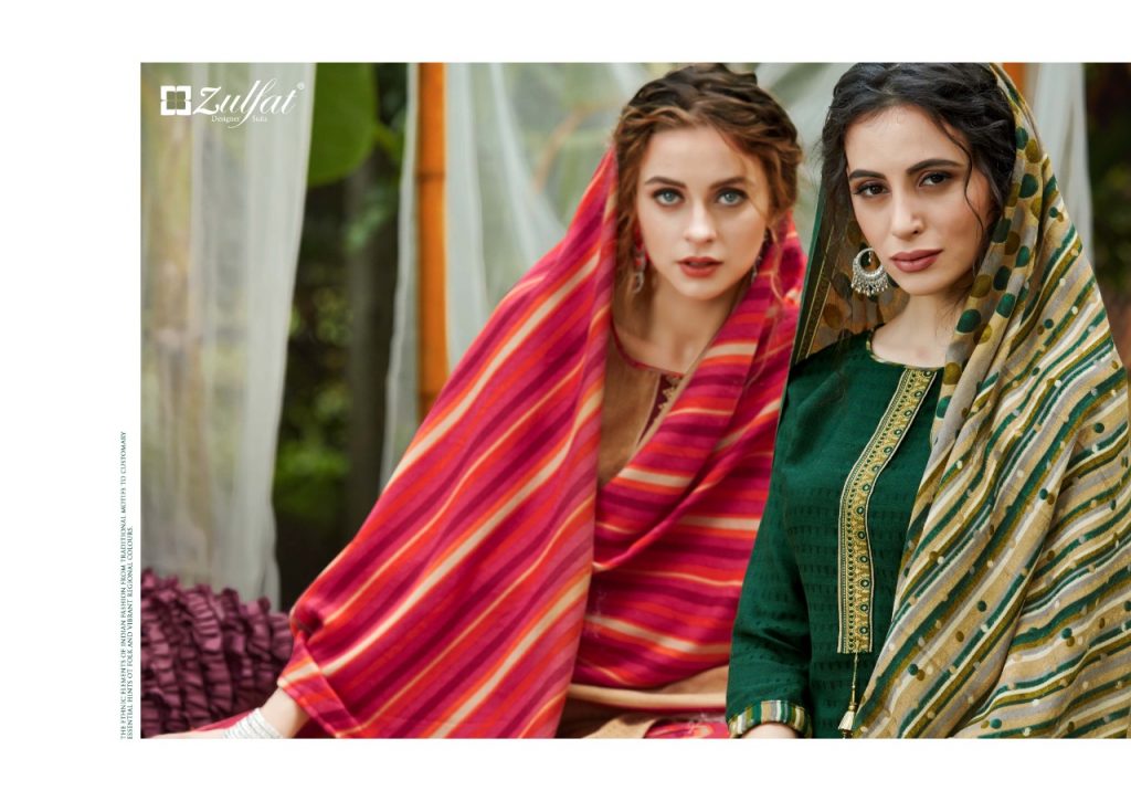| DETAILS | *”Zulfat Designer Suits”* Presents *”PATIALA BEATS”* ? Top: 100% Pure Pashmina Print with Premium Elegantly Stitched Kashmiri Tie and Lace. (2.50 mtrs) ? Dupatta: Pure Pashmina Shawl with four side lace (2.30 mtr) ? Bottom: Pure Pashmina Printed Patiala Salwar (3 mtrs apx) ?Pcs: 10 ?Rate: 475/- (GST extra) |