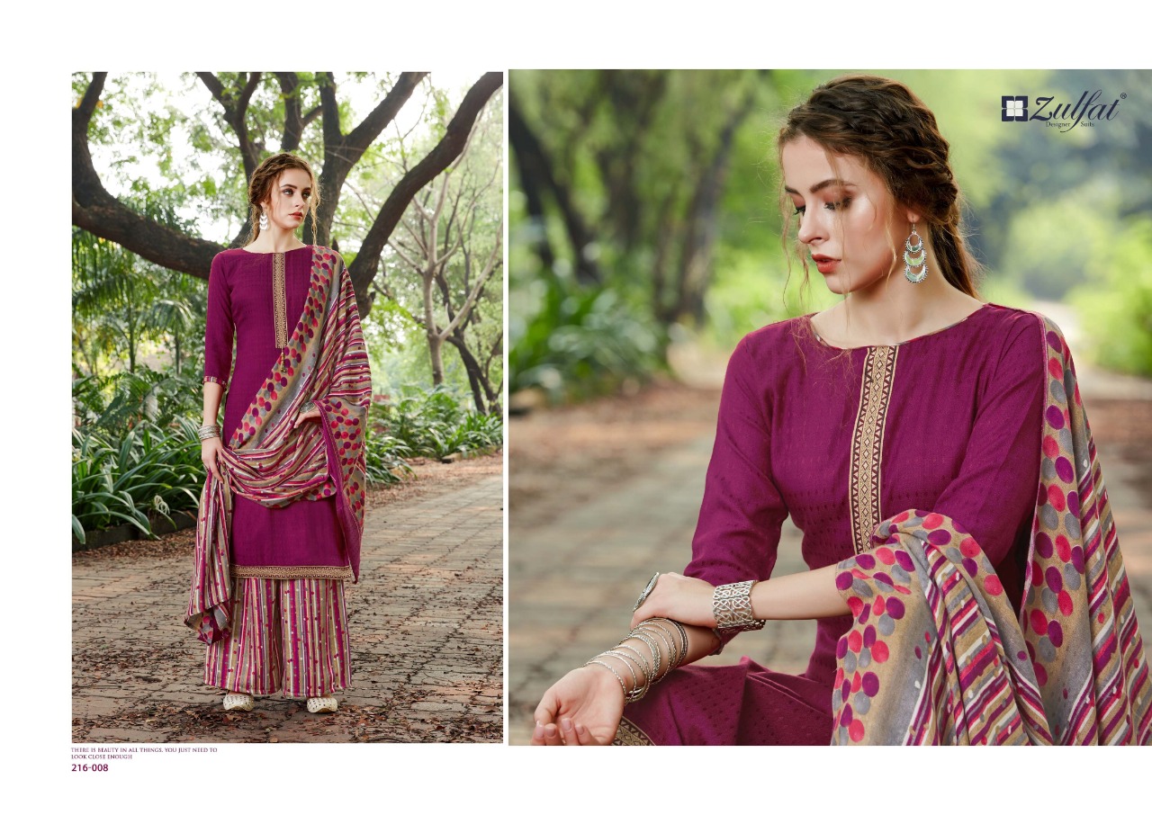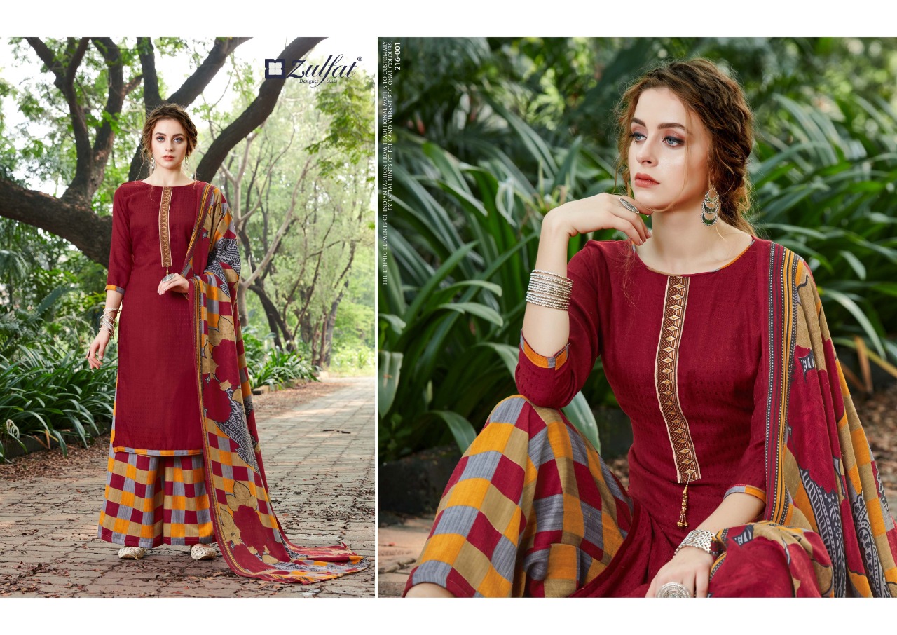 | DETAILS | *”Zulfat Designer Suits”* Presents *”PATIALA BEATS”* ? Top: 100% Pure Pashmina Print with Premium Elegantly Stitched Kashmiri Tie and Lace. (2.50 mtrs) ? Dupatta: Pure Pashmina Shawl with four side lace (2.30 mtr) ? Bottom: Pure Pashmina Printed Patiala Salwar (3 mtrs apx) ?Pcs: 10 ?Rate: 475/- (GST extra) |