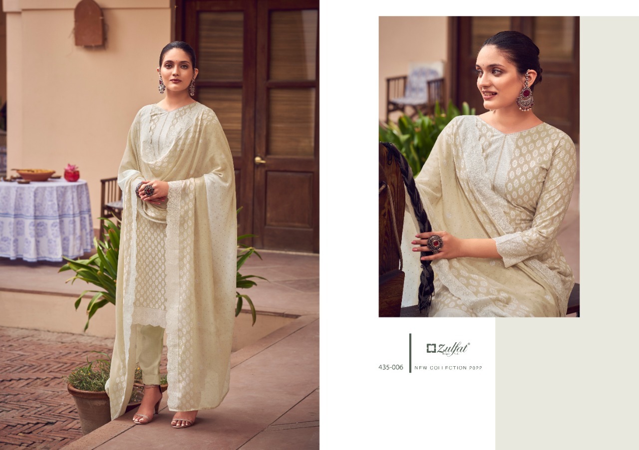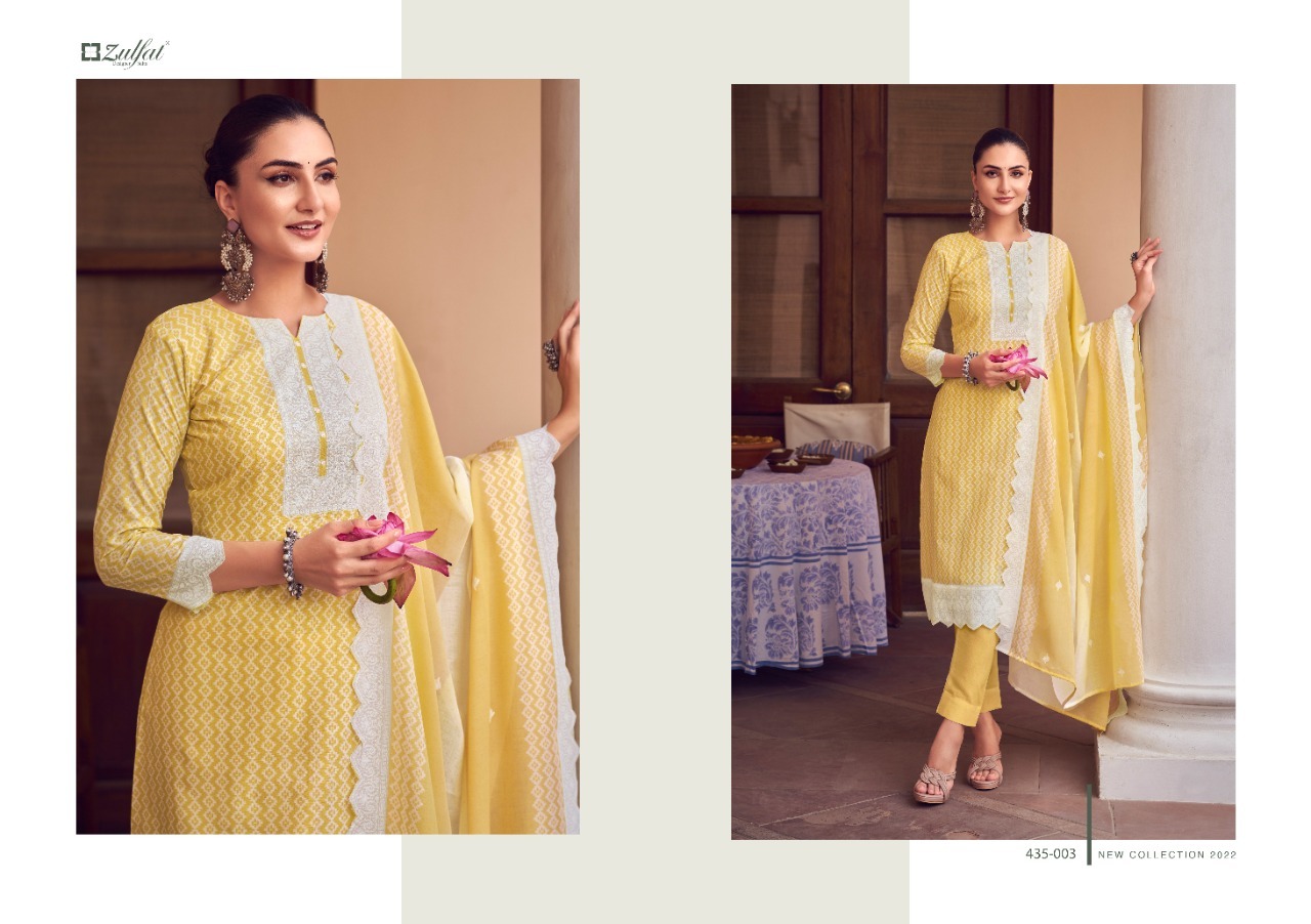ZULFAT DESIGNER STUDIO SAUMYA 435 SERIES COTTON SUITS CATALOG