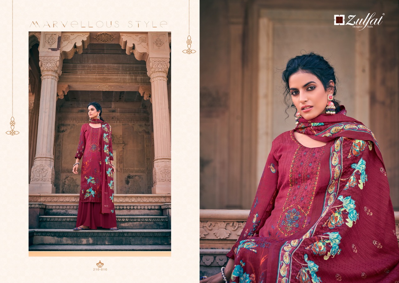 *”Zulfat Designer Suits”* Presents *”OLIVE”* ? Top: 100% Pure Pashmina Print with Heavy Embroidery (2.50 mtrs) ? Dupatta: Pure Pashmina Shawl with four side lace (2.30 mtr) ? Bottom: Pure Pashmina Spun (3 mtrs apx) |
