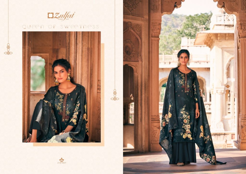 | DETAILS | *”Zulfat Designer Suits”* Presents *”OLIVE”* ? Top: 100% Pure Pashmina Print with Heavy Embroidery (2.50 mtrs) ? Dupatta: Pure Pashmina Shawl with four side lace (2.30 mtr) ? Bottom: Pure Pashmina Spun (3 mtrs apx) |