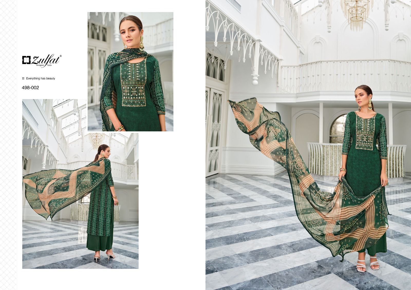 | DETAILS | ***FABRIC DETAILS:-* *Top: *100% Pure Viscose Rayon Exclusive Designer Print With Heavy Embroidery And Swarovski Work* (2.50 mtrs apx)Dupatta: 100% Pure Nazneen Chiffon Print (2.30 mtrs apx)Bottom: *100% Pure Viscose Rayon Salwar* (3 mtrs apx)Pcs: 10** |