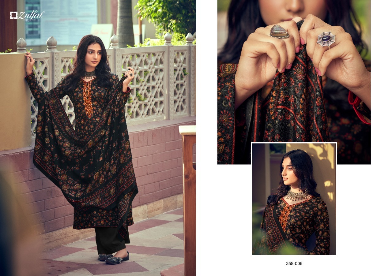 | DETAILS | Top: 100% Pure Pashmina Digital Style Print with Heavy Embroidery Work. (2.50 mtrs) Dupatta: 100% Pure Pashmina Shawl. (2.30 mtr) Bottom: Pure Pashmina Spun. (3 mtrs apx)️Pcs: 10 |