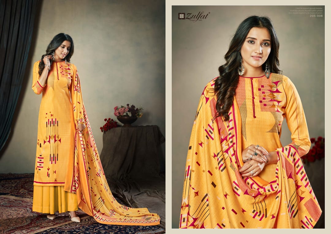 | DETAILS | # Winter Affair *”Zulfat Designer Suits”* Presents *”WINTER AFFAIR”* ? Top: 100% Pure Pashmina Digital Style Print (2.50 mtrs) ? Dupatta: Pure Pashmina Shawl with four side lace (2.30 mtr) ? Bottom: Pure Pashmina Spun (3 mtrs apx) ?Pcs: 10 ?Rate: 395/- (GST extra) # Book Now |