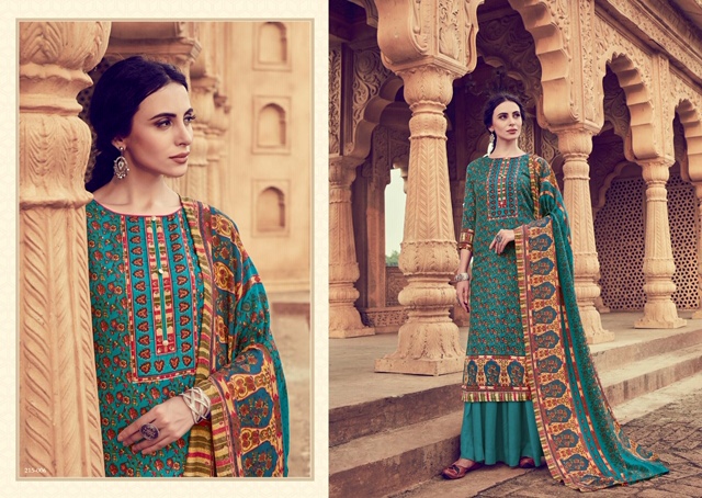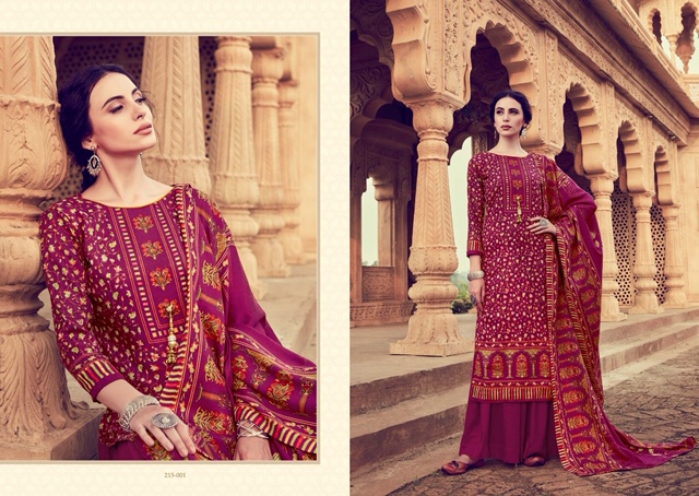 | DETAILS | *”Zulfat Designer Suits”* Presents *”WINTER AFFAIR”* ? Top: 100% Pure Pashmina Digital Style Print (2.50 mtrs) ? Dupatta: Pure Pashmina Shawl with four side lace (2.30 mtr) ? Bottom: Pure Pashmina Spun (3 mtrs apx) ?Pcs: 10 ?Rate: 425/- (GST extra) |
