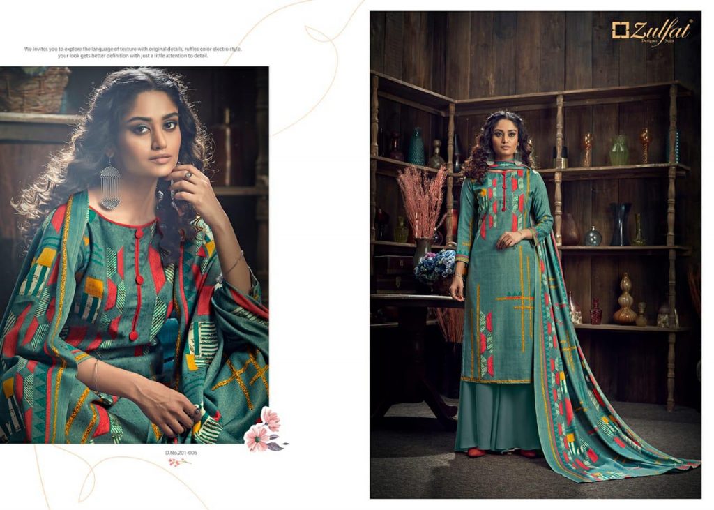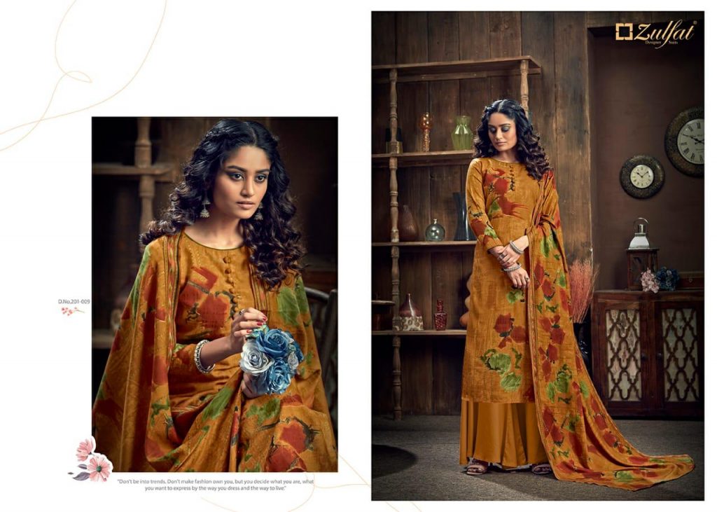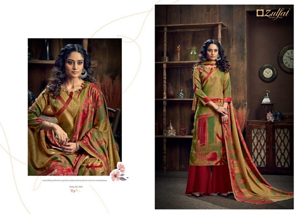 | DETAILS | *”Zulfat Designer Suits”* Presents *”WINTER MAGIC”* ? Top: 100% Pure Pashmina Digital Style Print (2.50 mtrs) ? Dupatta: Pure Pashmina Shawl with four side lace (2.30 mtr) ? Bottom: Pure Pashmina Spun (3 mtrs apx) |