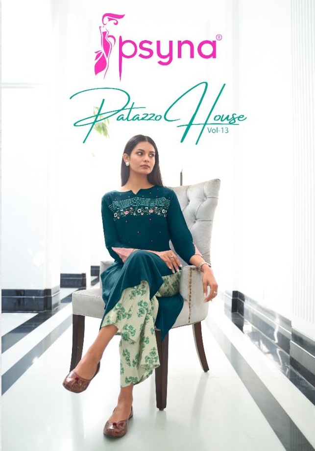 PSYNA PALAZZO HOUSE VOL 13 RAYON KURTI WITH BOTTOM LATEST CATALOGUE