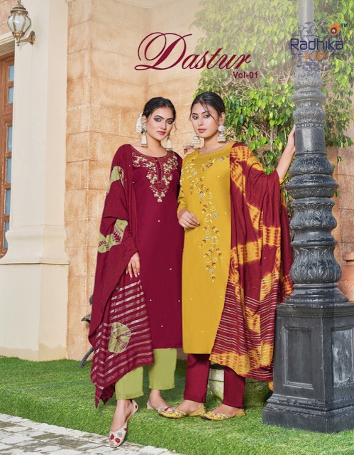RADHIKA LIFESTYLE DASTUR VOL 1 KURTI PANT WITH DUPATTA WHOLESALER SURAT