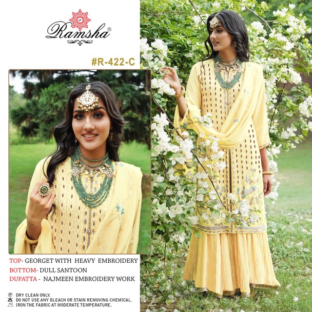RAMSHA R 422 NX PAKISTANI SALWAR SUITS WHOLESALE