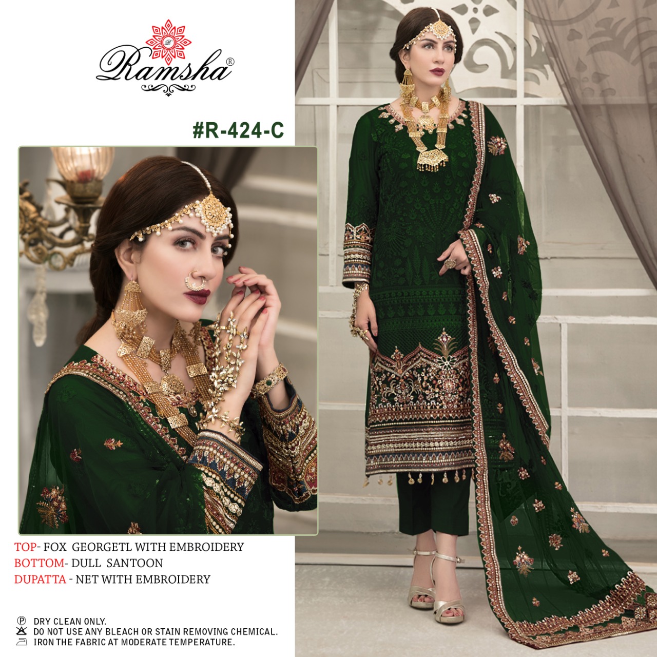 RAMSHA PRESENT R 424 NX GEORGETTE PAKISTANI SALWAR KAMEEZ WHOLESALE
