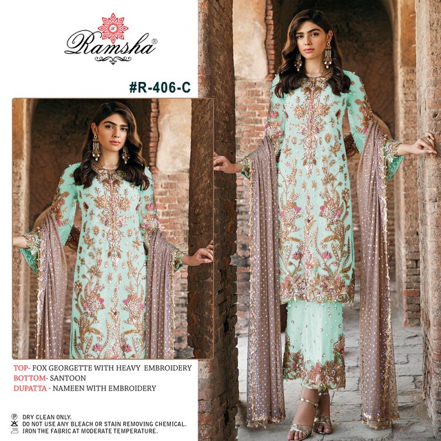RAMSHA R 406 A TO R 406 E PAKISTANI GEORGETTE SUITS WHOLESALER