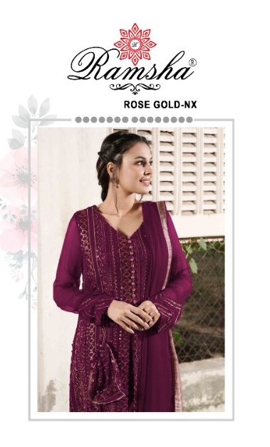 RAMSHA ROSE GOLD NX GEORGET WITH EMBROIDERY PAKISTANI SUITS AT SURAT