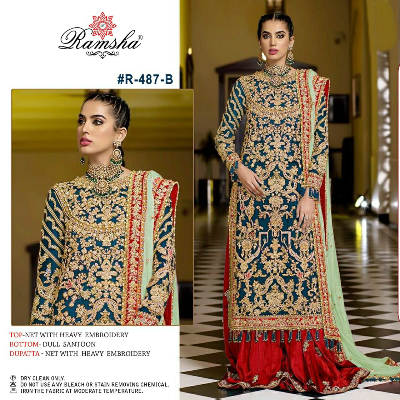 RAMSHA R 481 TO R 483 PAKISTANI SALWAR SUITS WHOLESALER SURAT