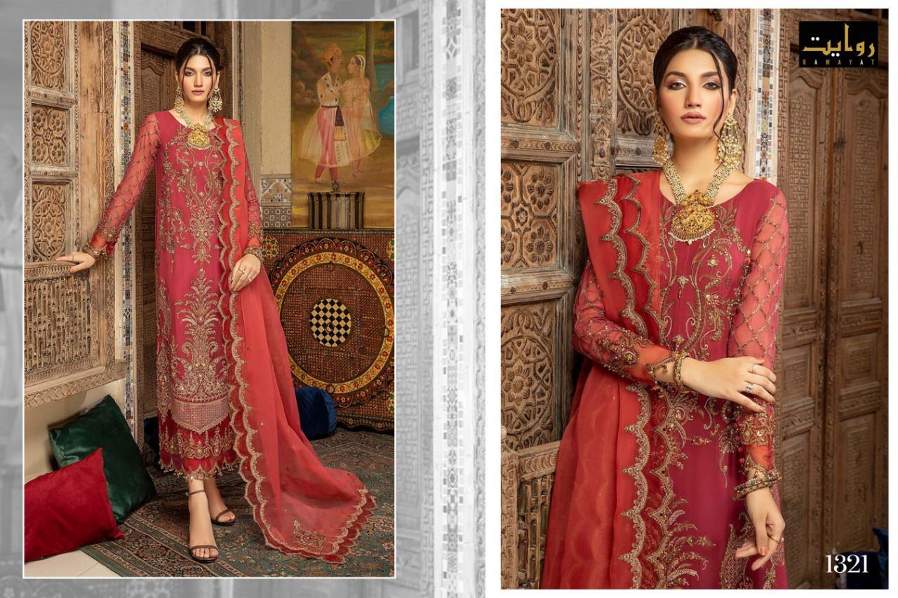 RAWAYAT 027 ORGANZA EMBROIDERY READYMADE SUITS WHOLESALER