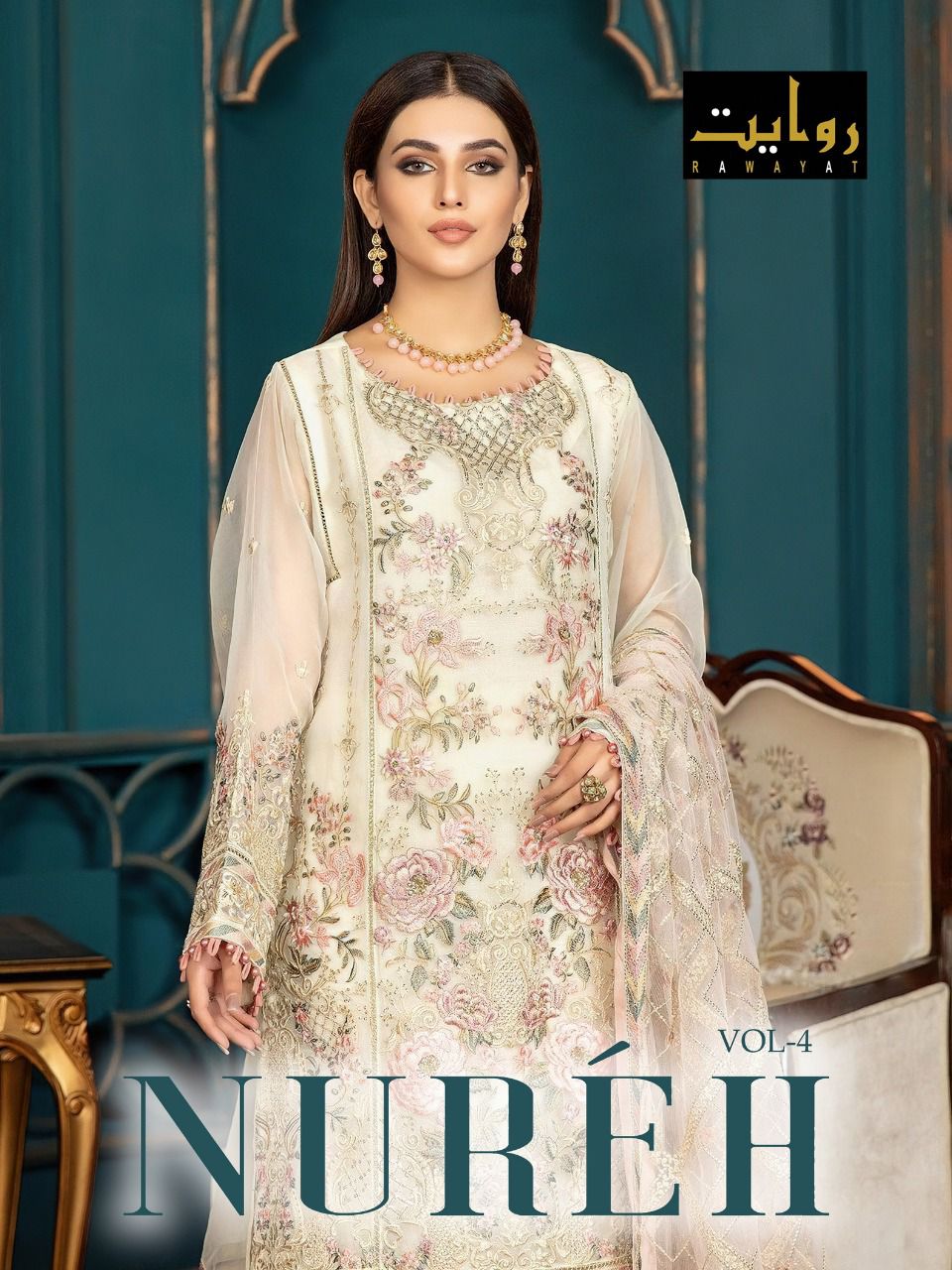 RAWAYAT NUREH VOL 4 FOUX GEORGETTE PAKISTANI SALWAR KAMEEZ WHOLESALE