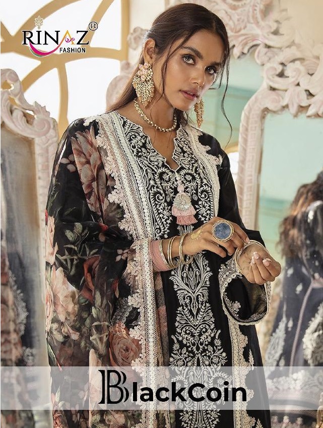 RINAZ FASHION BLACKCOIN CAMBRIC COTTON PAKISTANI SUITS WHOLESALE
