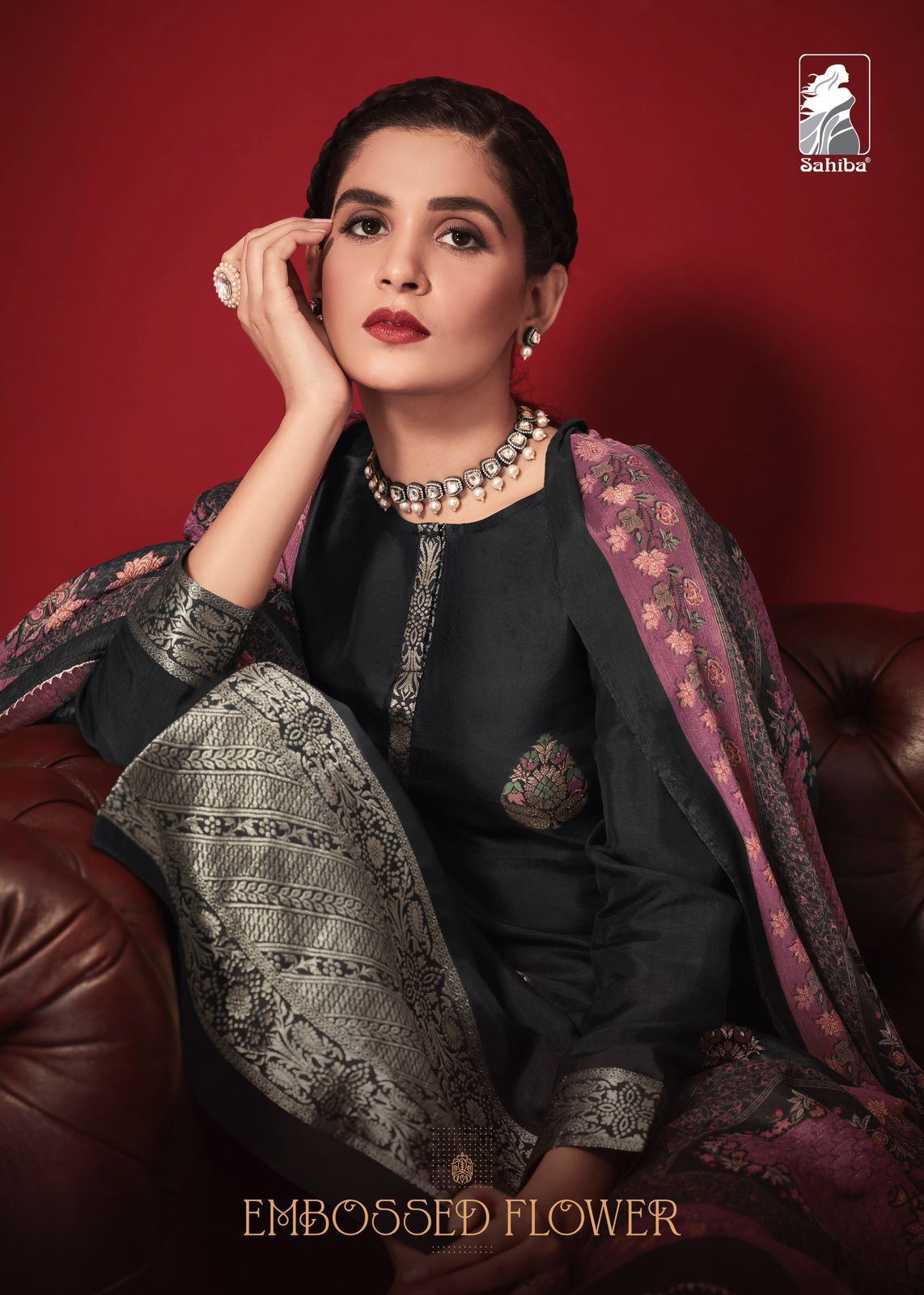 SAHIBA EMBOSSED FLOWER SILK SALWAR SUITS WHOLESALER SURAT