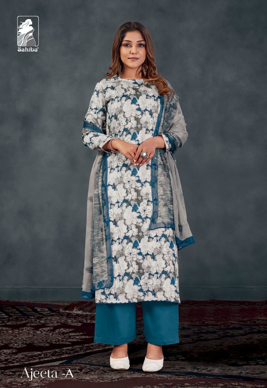 SAHIBA AJEETA COTTON SATIN DIGITAL PRINT SUITS WHOLESALE