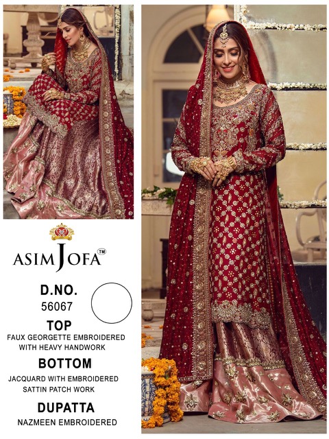 ASIM JOFA 56067 SERIES GEORGETTE EMBROIDERED PAKISTANI SUITS BRIDAL COLLECTION