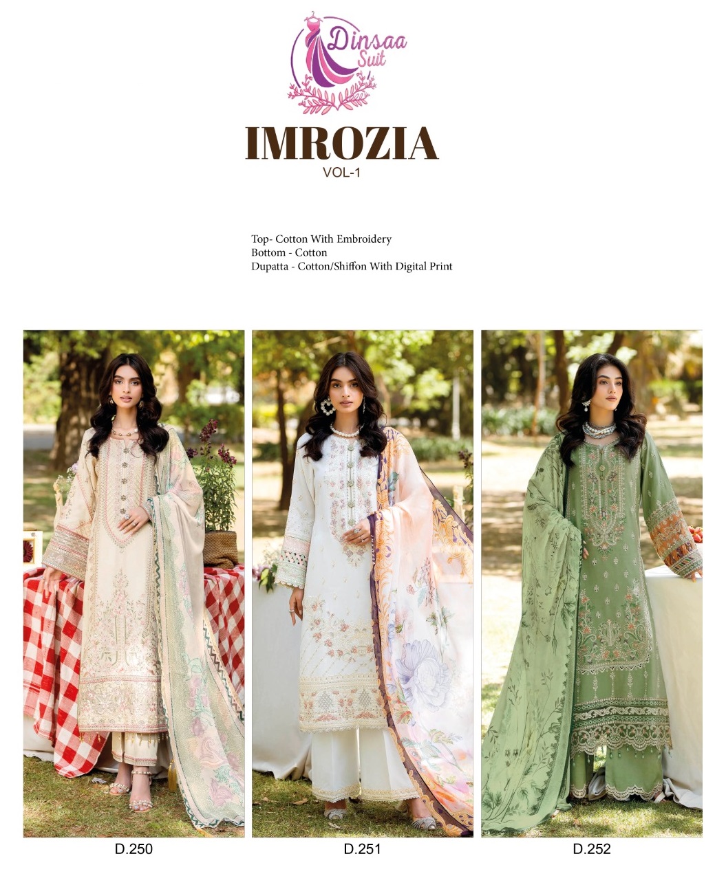 DINSAA SUIT 250 251 252 IMROZIA VOL 1 PAKISTANI SUITS