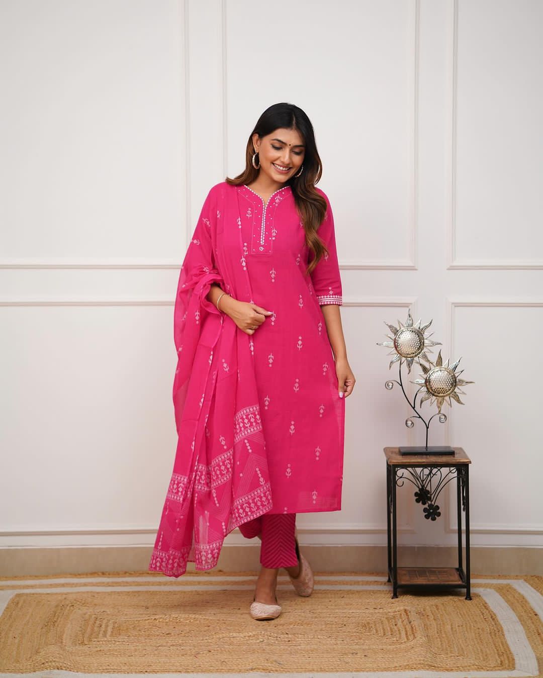 AKSHAR DESIGNER PINK COTTON ALINE KURTA SET