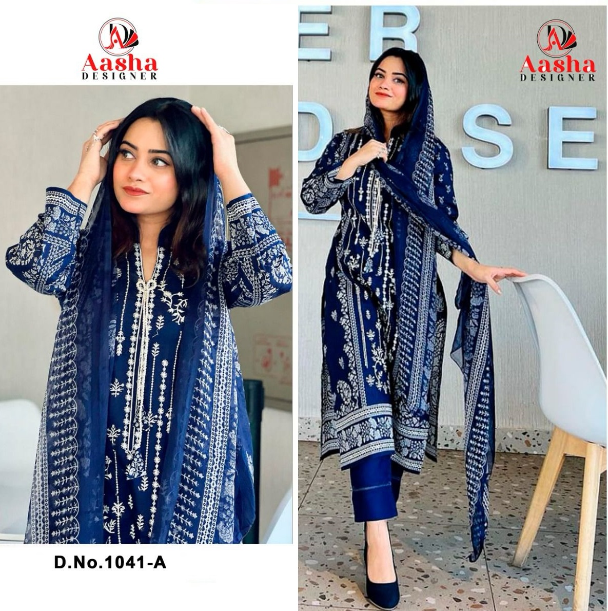 AASHA DESIGNER 1041 B COTTON SALWAR SUITS