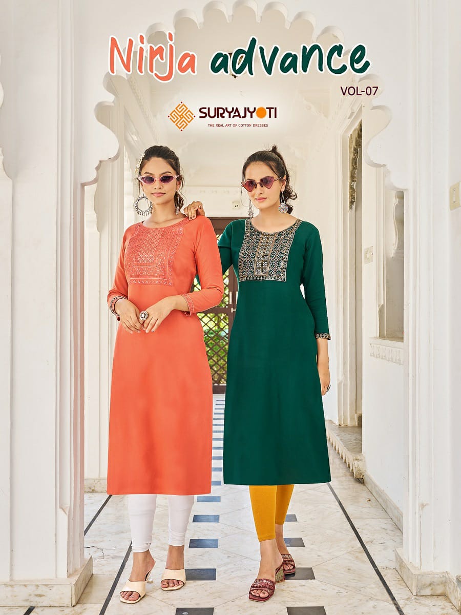 SURYAJYOTI NIRJA ADVANCE VOL 7 COTTON EMBROIDERY KURTIS NEW CATALOGUE