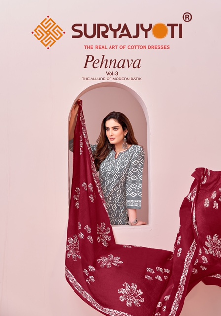 SURYAJYOTI PEHNAVA VOL 3 COTTON BATIK PRINT SUITS WHOLESALE PRICE