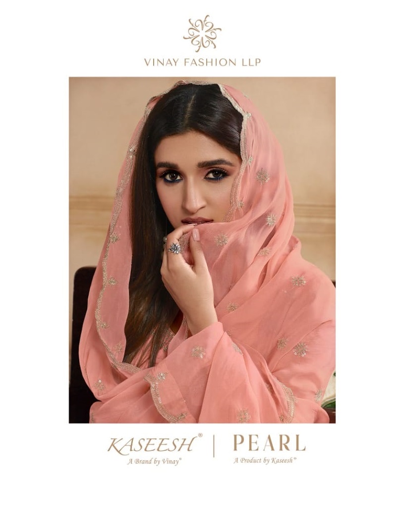 VINAY KASEESH PEARL ORGANZA PRINT EMBROIDERY SUITS WHOLESALE