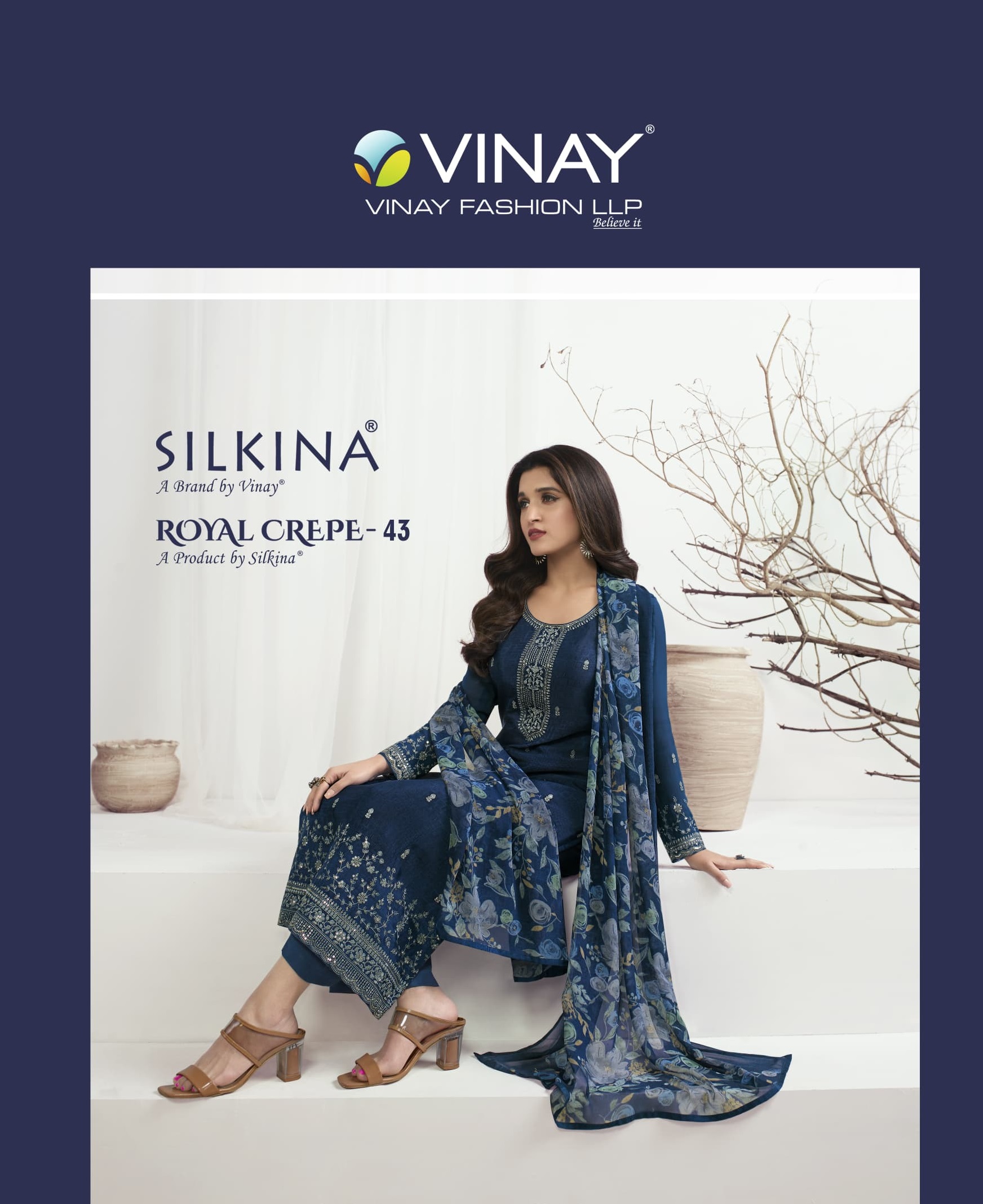 VINAY SILKINA ROYAL CREPE 43 EMBROIDERY PRINTED SUITS SUPPLIER SURAT